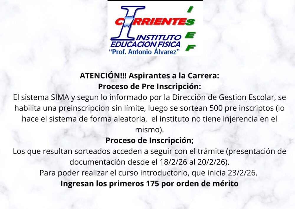 Por este medio, invitamos a todos los ineteresados en estudiar Educación Física en nuestro ISEF en 2026, a concurrir al Gimnasio del CEF N°1 sito en Av. Patagonia 1801 de nuestra ciudad Capital, el día miércoles 3 de diciembre de 2025 desde las 10:15 hs; donde abordaremos cuestiones administrativas, pedagógicas y organizativas del CURSO INTRODUCTORIO 2026. Los esperamos